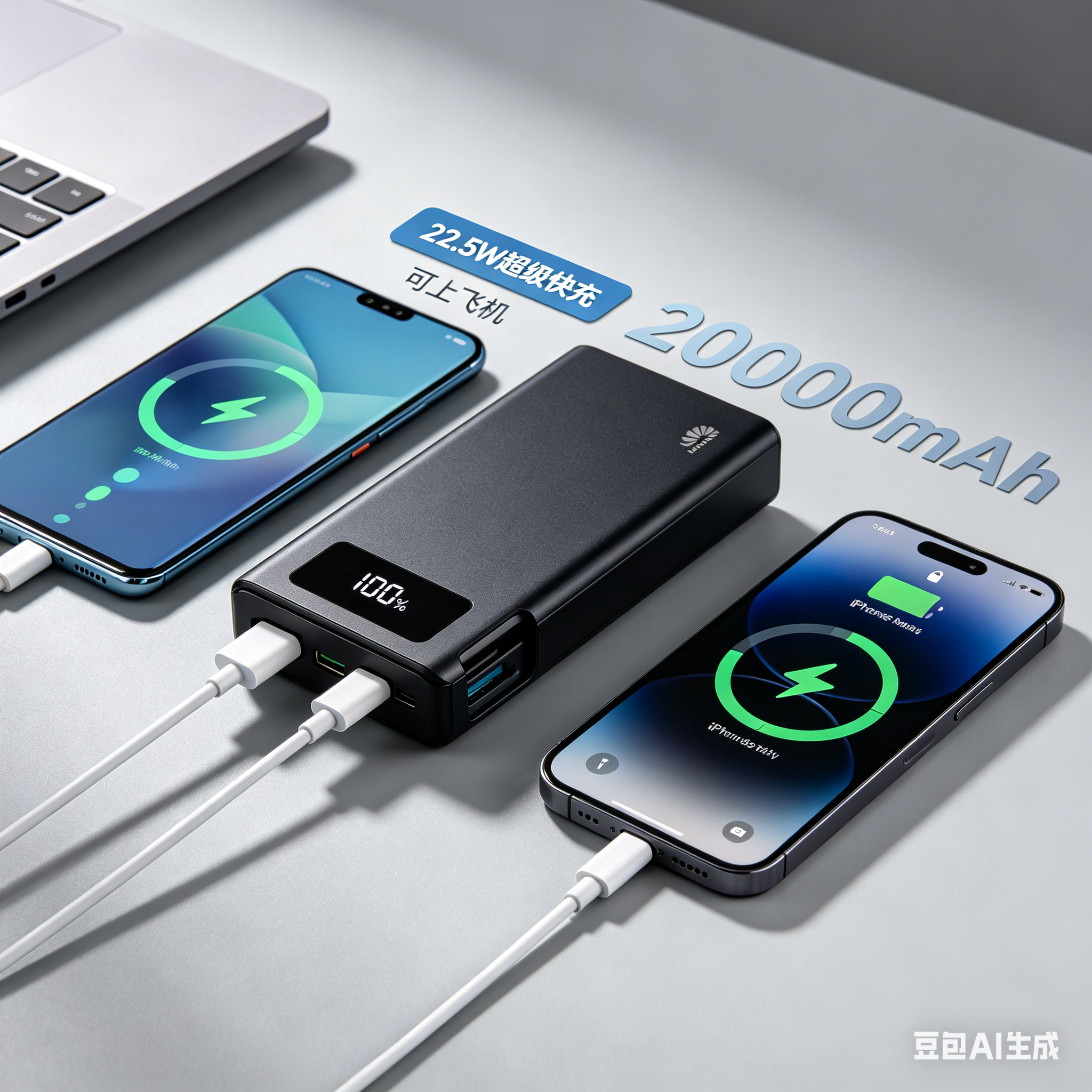 ⭐ 可上飞机 🔋 20000mAh大容量 ⚡ 22.5W PD+QC 📱 自带Type-C+Lightning